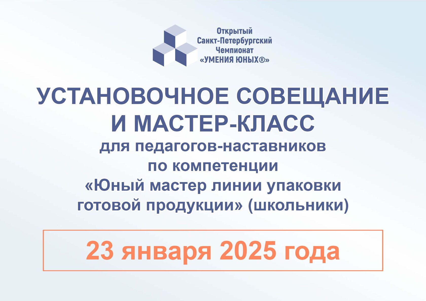 15 января 2026 года в 10:00 в Академии "МАСПО" состоятся Установочное совещание и мастер-класс по компетенции "Юный мастер линии упаковки готовой продукции" (школьники). Мероприятия проведет Главный эксперт Чемпионата "УМЕНИЯ ЮНЫХ®" Лучко Ирина Анатольевна.